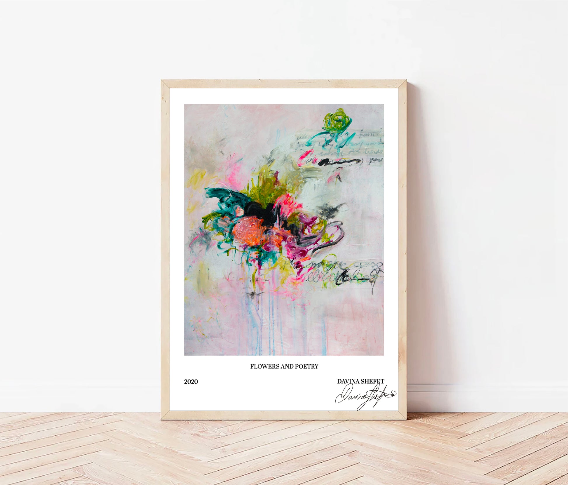 The result is a balance between intimacy and gesture: blossoms bloom through color and texture, while traces of words hover like whispers or memories beneath the surface. Expressive, personal, and physical, the series transforms poetry into pure matter — color as language, flowers as emotion.