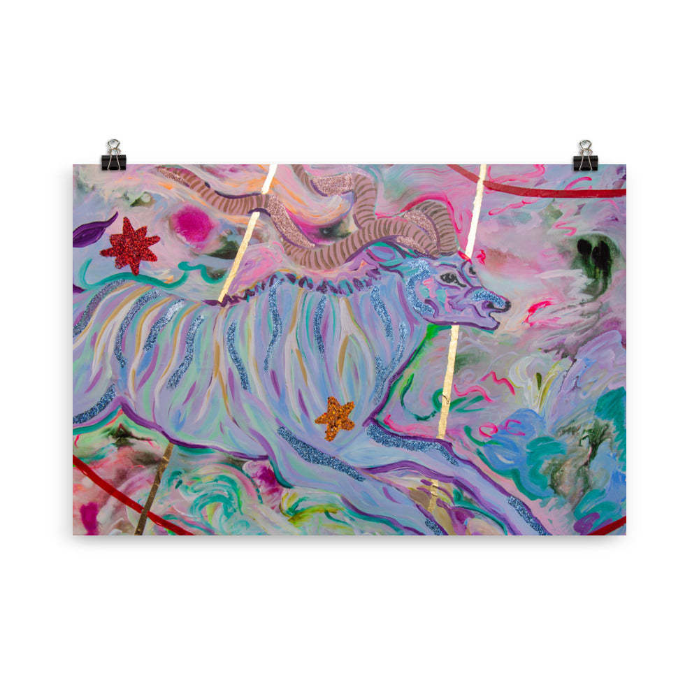 The Series of paintings "Regarde le Ciel" translating "Look at the sky", is inspired by 17th-century maps of the sky, constellations and the imagery of astrology.